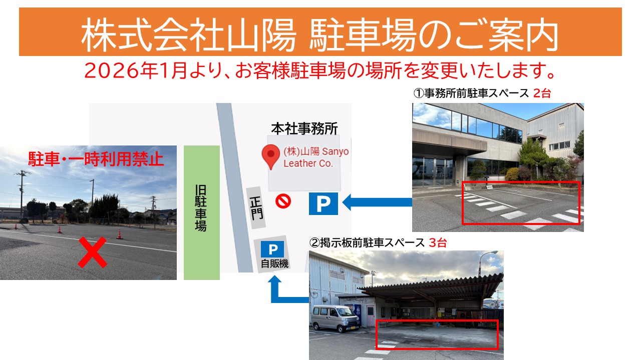 このたび、お客様駐車場の場所を下記の通り変更いたしましたので、お知らせいたします。ご来社される皆様にはご不便をおかけいたしますが、何卒ご理解とご協力のほど、よろしくお願い申し上げます。